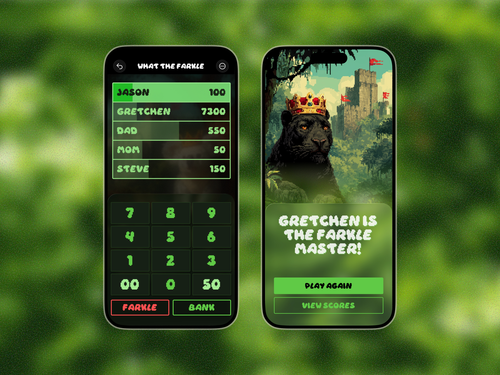 Existing Farkle scoring apps were too complicated and looked terrible. I wanted something fun and easy to use every day, something with personality and that made scoring super quick.